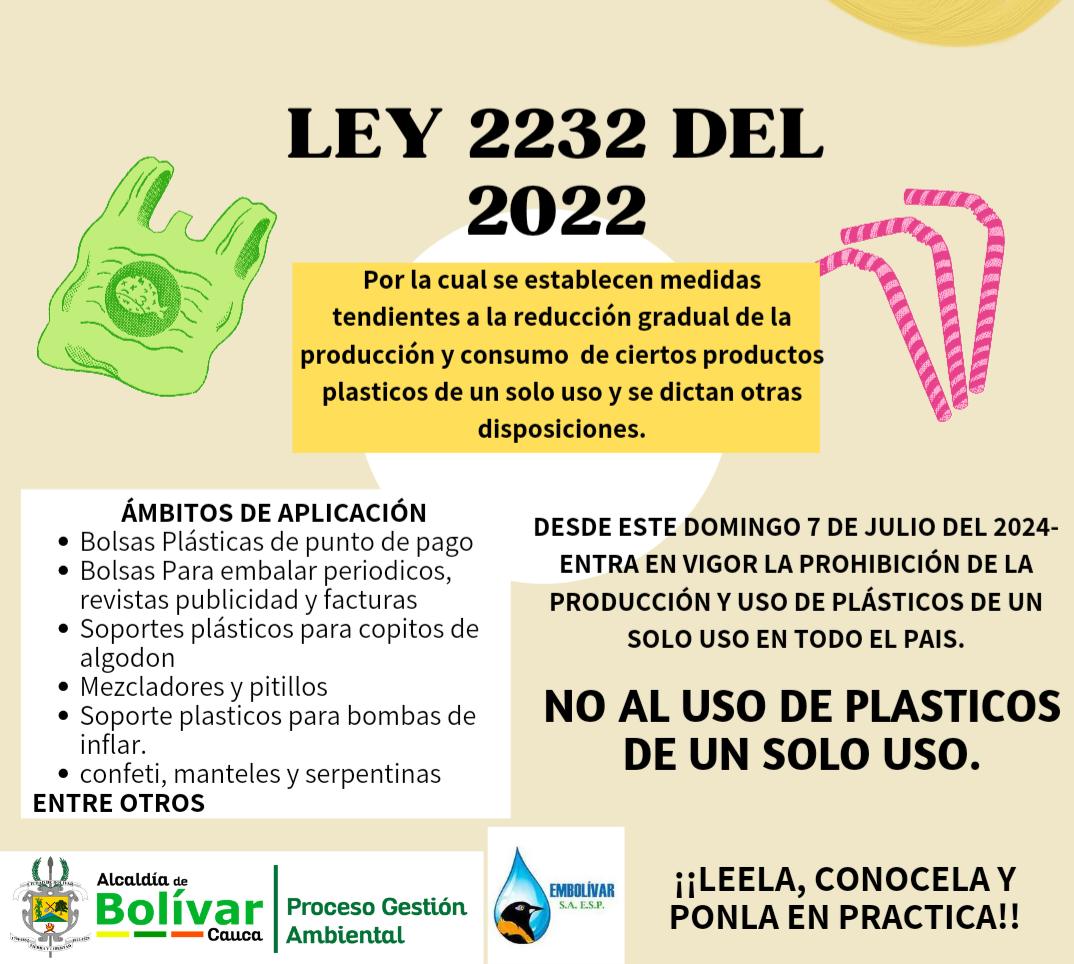 La Ley 2232 del 2022 establece medidas claras para la reducción progresiva de la producción y consumo de ciertos productos plásticos de un solo uso, y dicta disposiciones adicionales para promover prácticas más sostenibles y responsables con el medio ambiente.