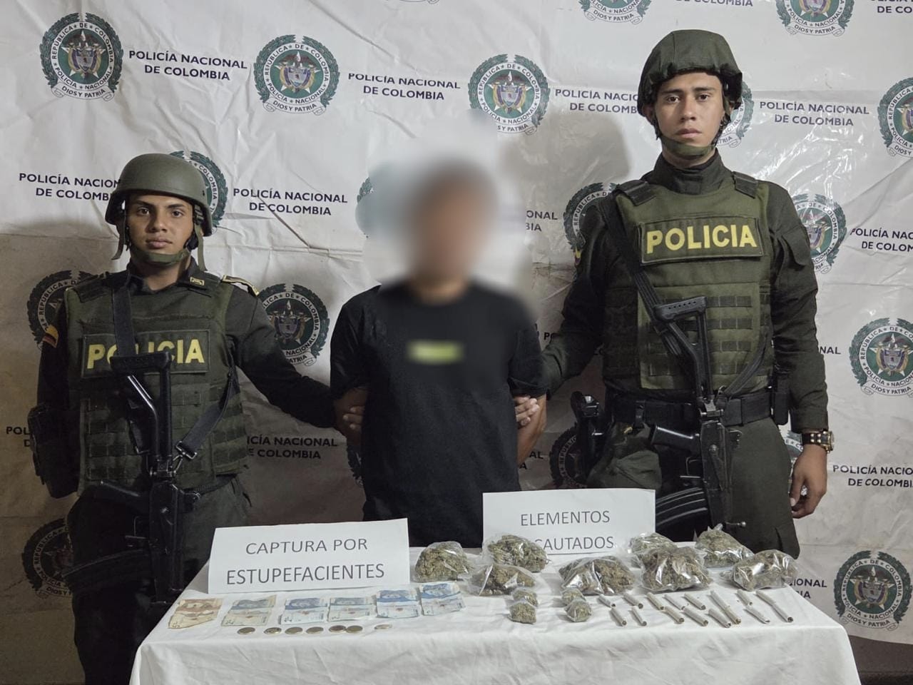En el marco de las acciones de control y patrullaje que adelanta la PolicÃa Nacional, fue capturado en flagrancia un ciudadano por el delito de tráfico, fabricación o porte de estupefacientes, en hechos ocurridos en el barrio Santander de la localidad de Rosas.