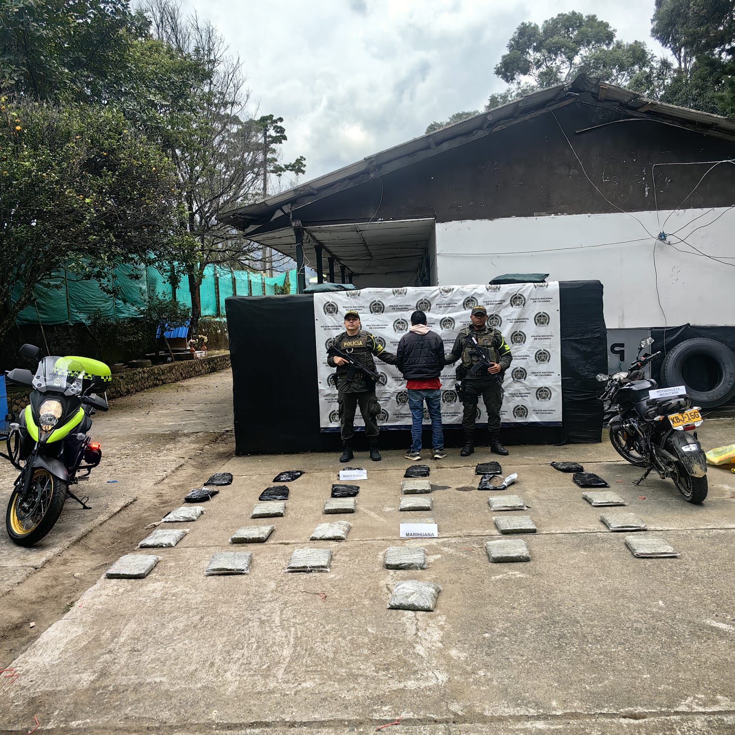 Durante el registro al individuo y al automotor, los oficiales encontraron un costal que contenía en su interior 30 kilogramos de marihuana. El capturado, junto con la motocicleta y la sustancia incautada, fueron puestos a disposición de la fiscalía general de la Nación para los procedimientos legales correspondientes.