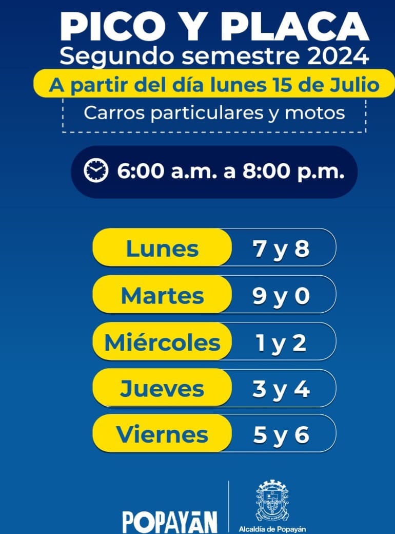 Con la novedad de dos horas adicionales al Pico y Placa anterior, arranca de manera pedagógica la nueva medida de restricción a la circulación de vehículos en las vías del municipio de Popayán.