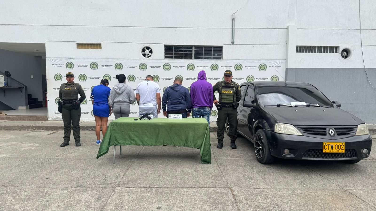 Los capturados, procedentes de la ciudad de Cali, presentan antecedentes judiciales por hurto y porte ilegal de armas de fuego. Todos fueron dejados a disposiciĂłn de la FiscalĂ­a General de la NaciĂłn por el delito de hurto calificado.