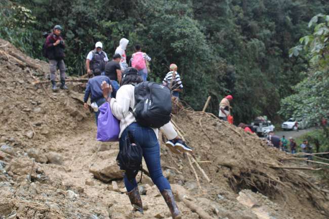 «Son más de 3.500 familias que están aisladas, sin poder salir de la zona porque se registró un nuevo derrumbe, algunas personas se atrevían a pasar, a pesar del peligro, pero al ver que caen más rocas y tierra, optaron por no transitar por el lugar», expresó Luis Urrea, periodista de este municipio.