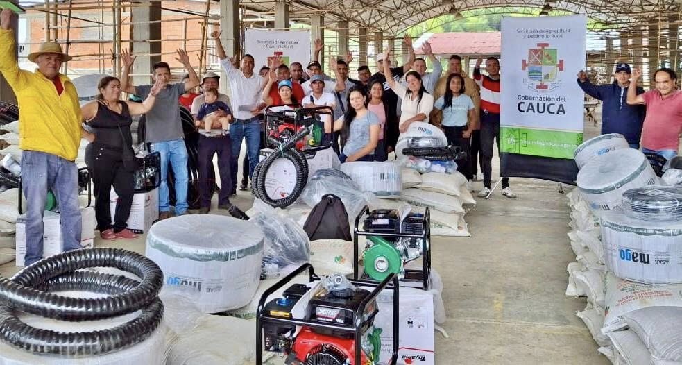 āHoy estamos aquĆ cumpliendo un compromiso de corazón, dĆ”ndoles a la comunidad lo que solicitaron en las charlas con nuestros funcionarios, esa ha sido nuestra polĆtica, trabajar y cumplir, que es lo mĆ”s importante para nosotros. AsĆ que son beneficiarios a quienes les damos insumos, maquinaria, entre otros beneficios, para que puedan mejorar su producción agrĆcolaā, expresó la primera autoridad de los caucanos, Jorge Octavio GuzmĆ”n.