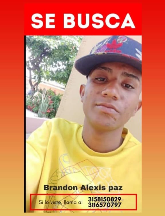 Las autoridades y familiares buscan a Brando Alexis Paz Castillo, un joven de 19 aƱos que fue reportado como desaparecido mientras se desplazaba desde la ciudad de Pasto hacia Cali.