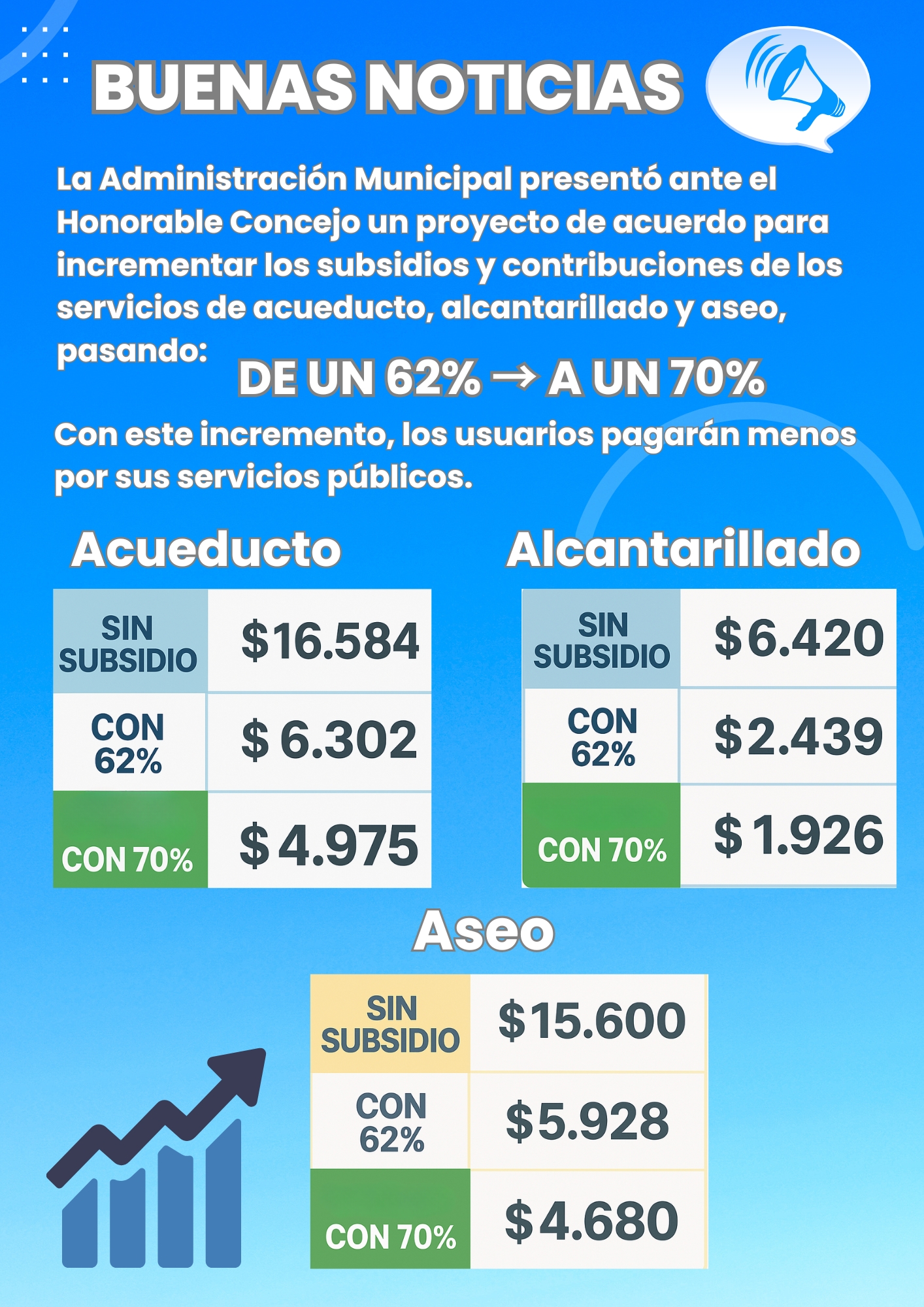 Esta iniciativa está dirigida a los usuarios de los estratos 1 y 2, quienes representan una parte significativa de la población serrana. Con este aumento, se espera reducir el valor que pagan las familias por sus servicios públicos, contribuyendo a aliviar la carga económica en los hogares más vulnerables.