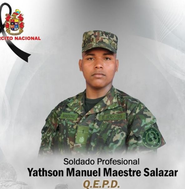 Un fuerte enfrentamiento entre integrantes del Ejército Nacional y la estructura disidente Franco Benavides en zona rural de Cumbitara, Nariño, dejó como saldo la muerte del soldado profesional Yathson Manuel Maestre Salazar, así como cuatro uniformados heridos que actualmente reciben atención médica.